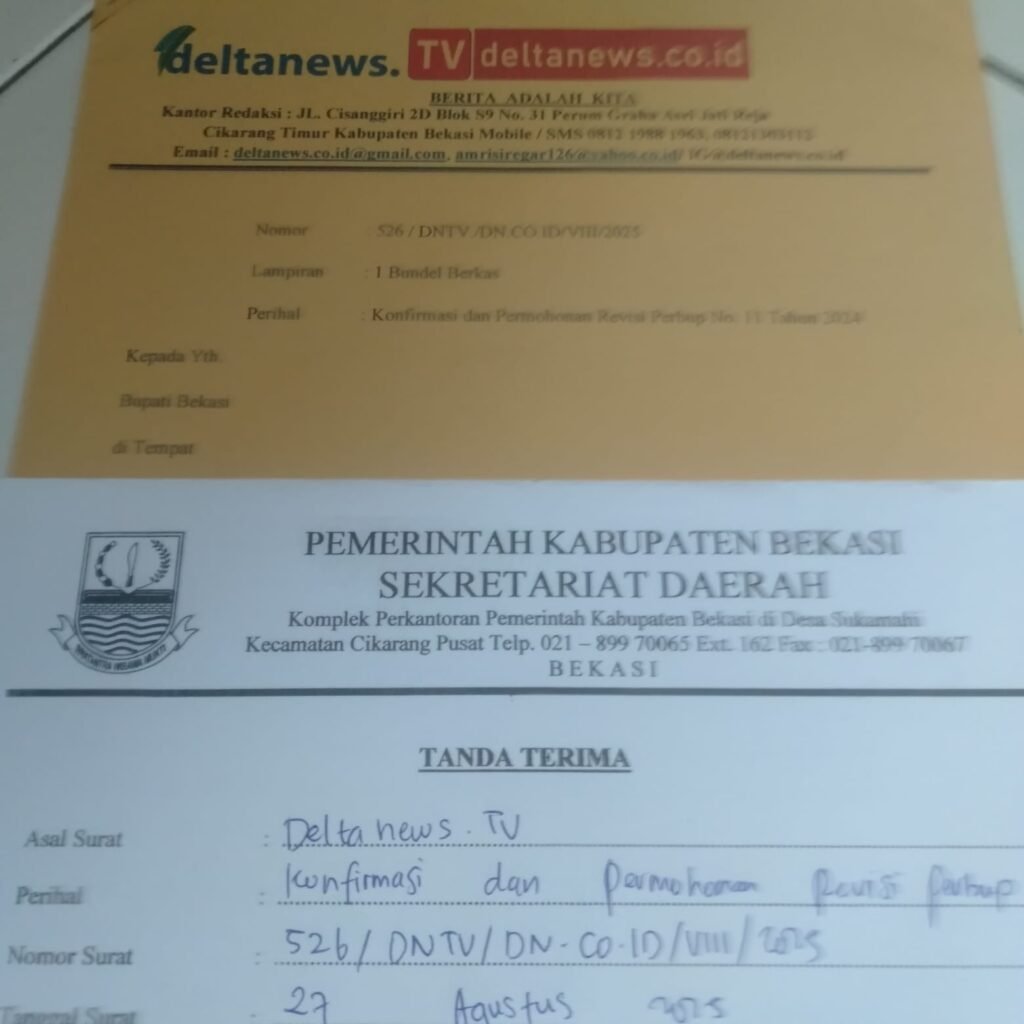 MANUVERNEWS.COM | BEKASI – Redaksi Media Online Deltanews, telah melayangkan surat konfirmasi resmi kepada Bupati Bekasi, terkait Peraturan Bupati (Perbup) Nomor 11 Tahun 2024 tentang Perubahan Ketiga atas Perbup Nomor 63 Tahun 2019 mengenai Petunjuk Pelaksanaan Hak Keuangan dan Administratif Anggota DPRD Kabupaten Bekasi. Namun hingga saat ini, surat tersebut belum mendapatkan tanggapan dari pihak Pemerintah Kabupaten Bekasi.