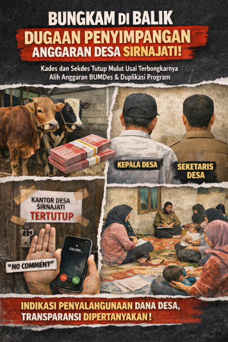 Sikap diam tersebut memunculkan pertanyaan baru di tengah publik, terutama setelah sebelumnya Sekretaris Desa sempat membenarkan adanya pengalihan anggaran penyertaan modal BUMDes Tahun 2023 senilai Rp 100 juta ke program ketahanan pangan berupa pengadaan dua ekor sapi.