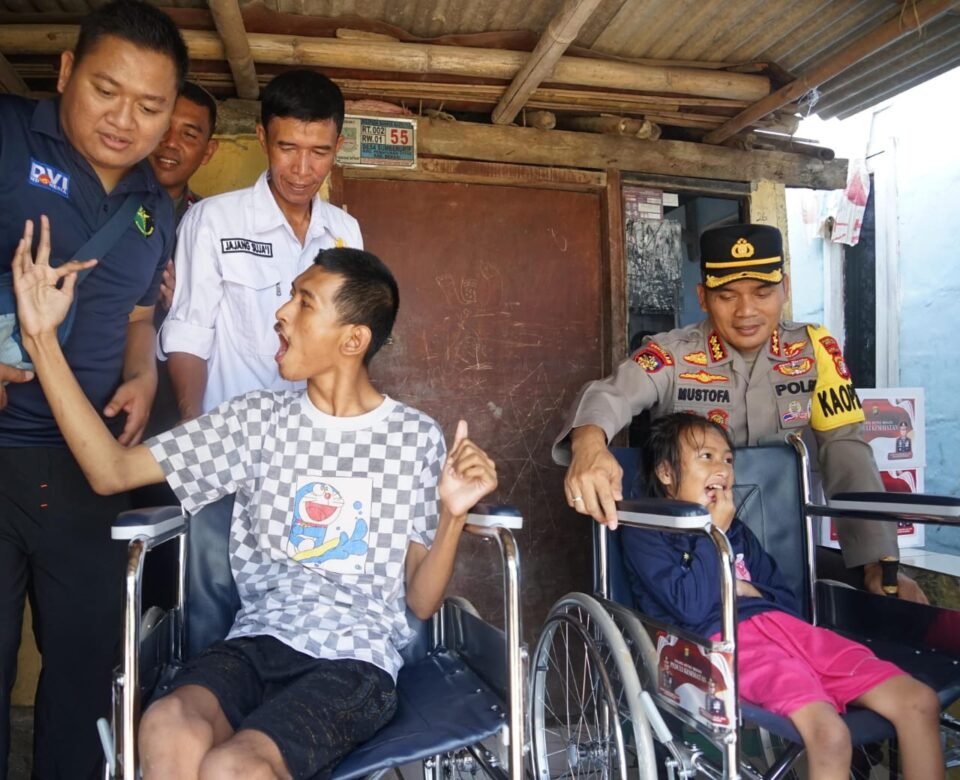 Penyerahan kursi roda dilakukan langsung oleh Kapolres Metro Bekasi, diiringi doa dan rasa syukur keluarga penerima. Wajah bahagia Fahreza dan Khoirunnisa tampak jelas meski dalam keterbatasan. Sementara orang tua mereka tidak kuasa menahan rasa haru ketika anak-anaknya mendapat perhatian dari jajaran kepolisian.