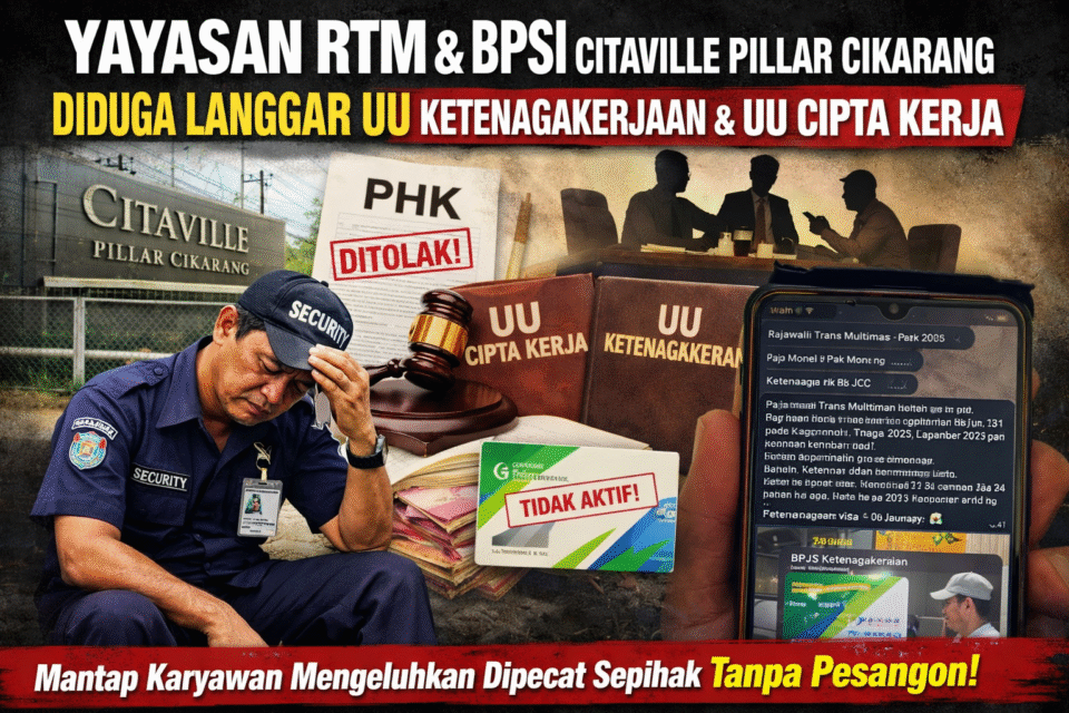MANUVERNEWS.COM | KAB. BEKASI — Seorang mantan karyawan Citaville Pillar Cikarang mengeluhkan nasibnya setelah diberhentikan secara sepihak oleh manajemen. Pemutusan hubungan kerja (PHK) tersebut diduga melanggar Undang-Undang Ketenagakerjaan dan Undang-Undang Cipta Kerja.